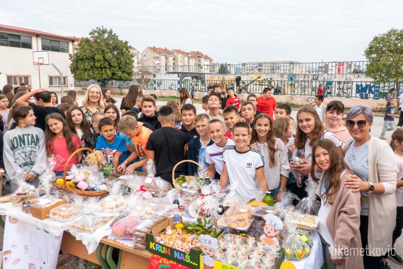 Učenici, učitelji uz svesrdnu podršku roditelja pripremili su lijepo ukrašene stolove prepune raznih vrsta kolača, kruha, voća, marmelada, sokova i drugih slastica. Na početku je bio prigodni program kojega je izveo školski zbor i članovi recitatorskih skupina, a sve prisutne je pozdravila ravnateljica Božena Nikoletić. Potom je župnik fra Denis Šimunovića uručio zahvalnicu jer je prihod prodaje prošlogodišnjeg Dana kruha bio namijenjen za obnovu orgulja u metkovskoj župnoj crkvi sv. Ilije.