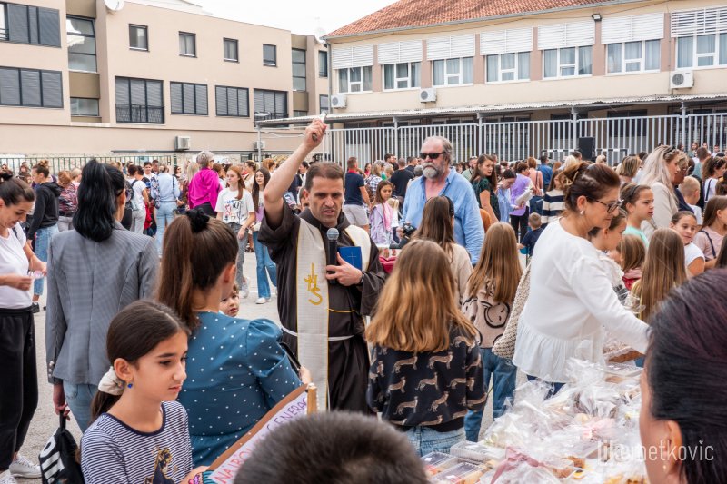 Fra Denis je izmolio blagoslovnu molitvu i blagoslovio hranu na stolovima te je uslijedila prigodna prodaja namijenjena opremanju škole klimatizacijskim uređajima.