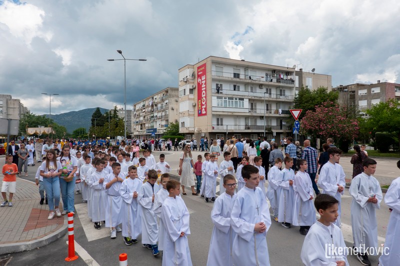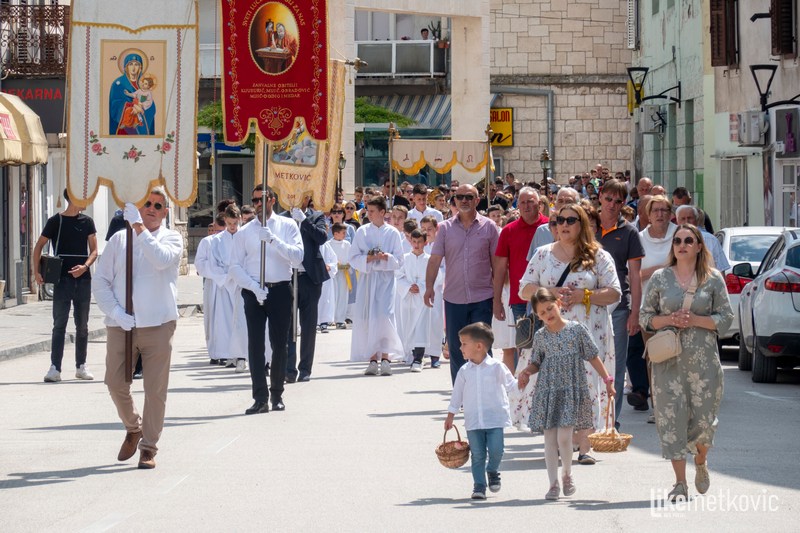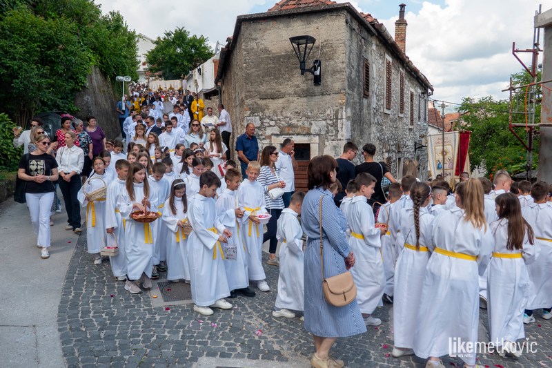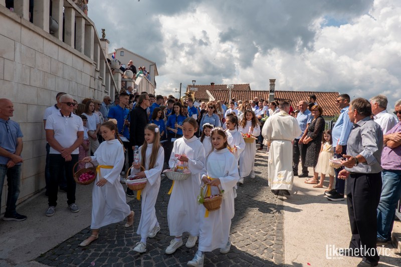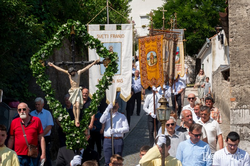 U procesiji su sudjelovali ovogodišnji prvopričesnici koji su nosili košare s cvjetnim laticama, a pred njima su barjaktari nosili župne zastave. Blagoslov s Presvetim je udijelio fra Marko Pudar na tri mjesta gdje su župljani uredili prigodne oltare.