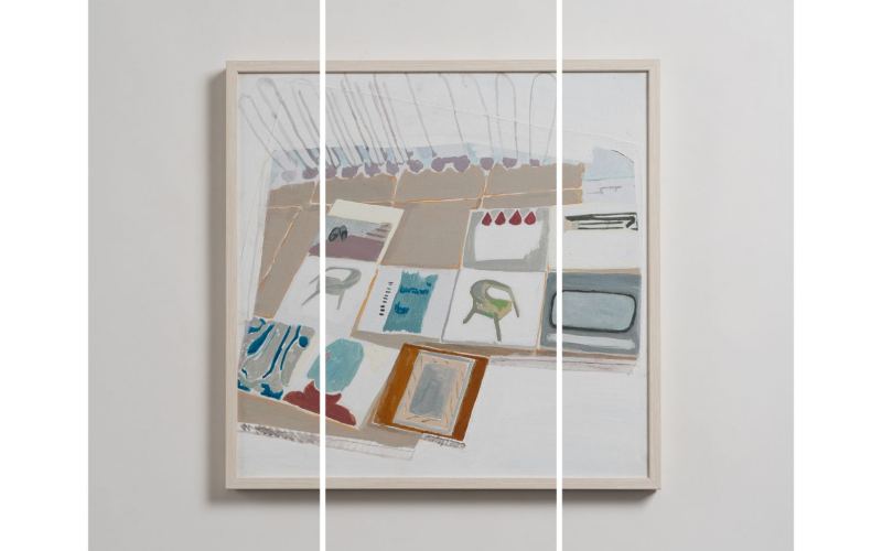 Radove Kristine Krstičević odlikuju suzdržana paleta, jasna kompozicija te izražen osjećaj za ritam i strukturu slike, a izložba propituje granice između funkcionalnog i estetskog.