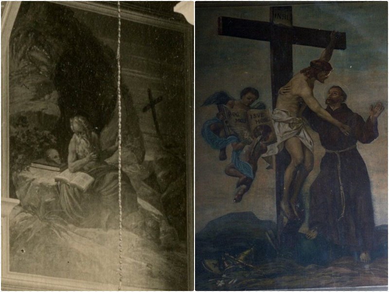 Sv. Jeronim s razlednice iz 1930.-tih (lijevo) i sv. Franjo Asiški, snimljeno 1994. (desno).