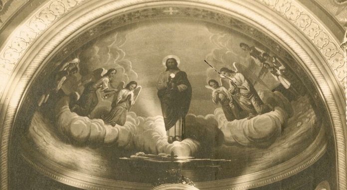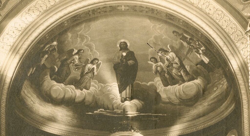 Unutrašnjost crkve sv. Ilije u Metkoviću na razlednici iz 1930.-tih.