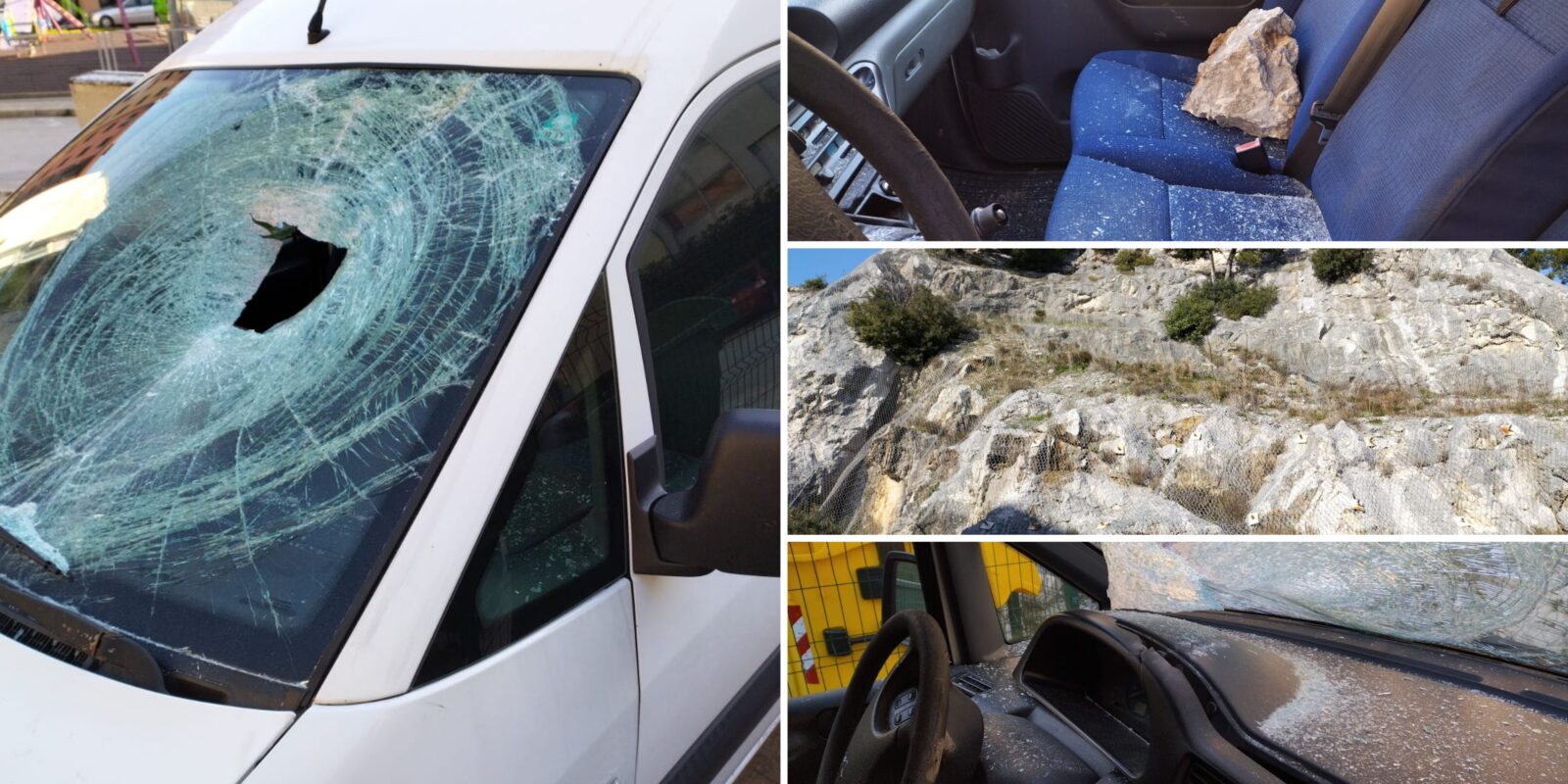 Izbjegnuta je velika tragedija u Ulici kralja Petra Svačića kad je veliki kamen doletio s brda i razbio parkiran automobil.
