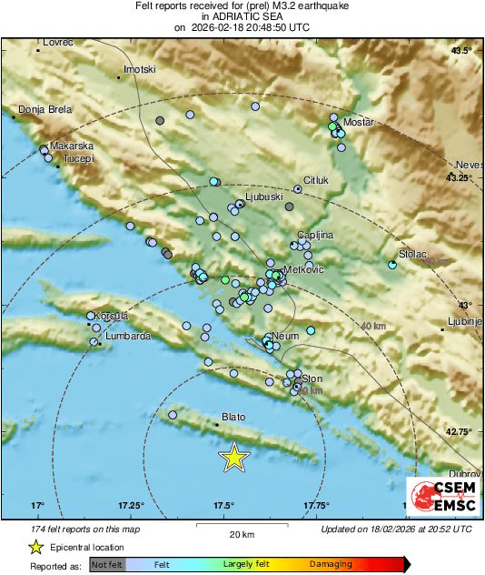 Potres se osjetio i u Neretvanskoj dolini i u susjednoj Hercegovini. – Kratko, ali se dobro osjetilo… Više se čuo, nego osjetio… Baš zatutnjalo, neki su od komentara.