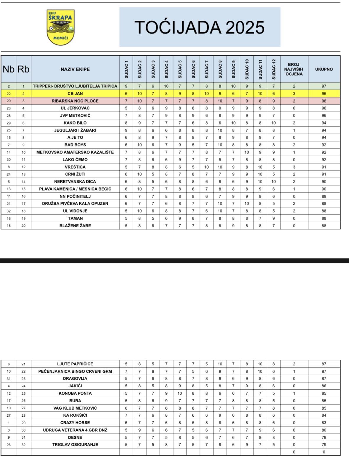Najuspješnije ekipe TOĆIJADE 2025. su: