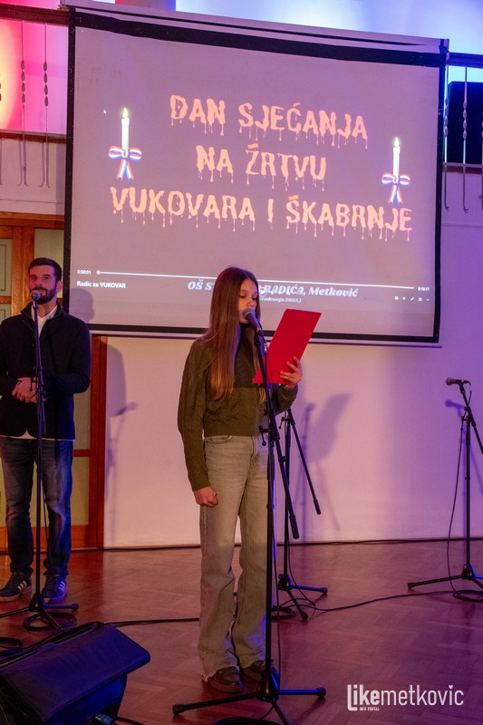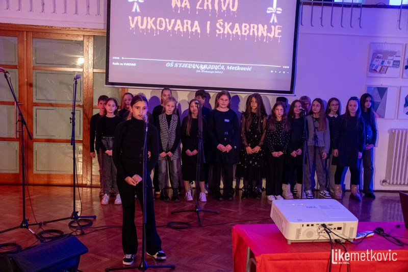 Zbog kišnog vremena, ovogodišnje obilježavanje Dana sjećanja na žrtvu Vukovara i Škabrnje umjesto u Gradskom parku održano je večeras u Galeriji Gradskog kulturnog središta u Metkoviću. Program su pripremili učenici i učitelji Osnovne škole Stjepana Radića.