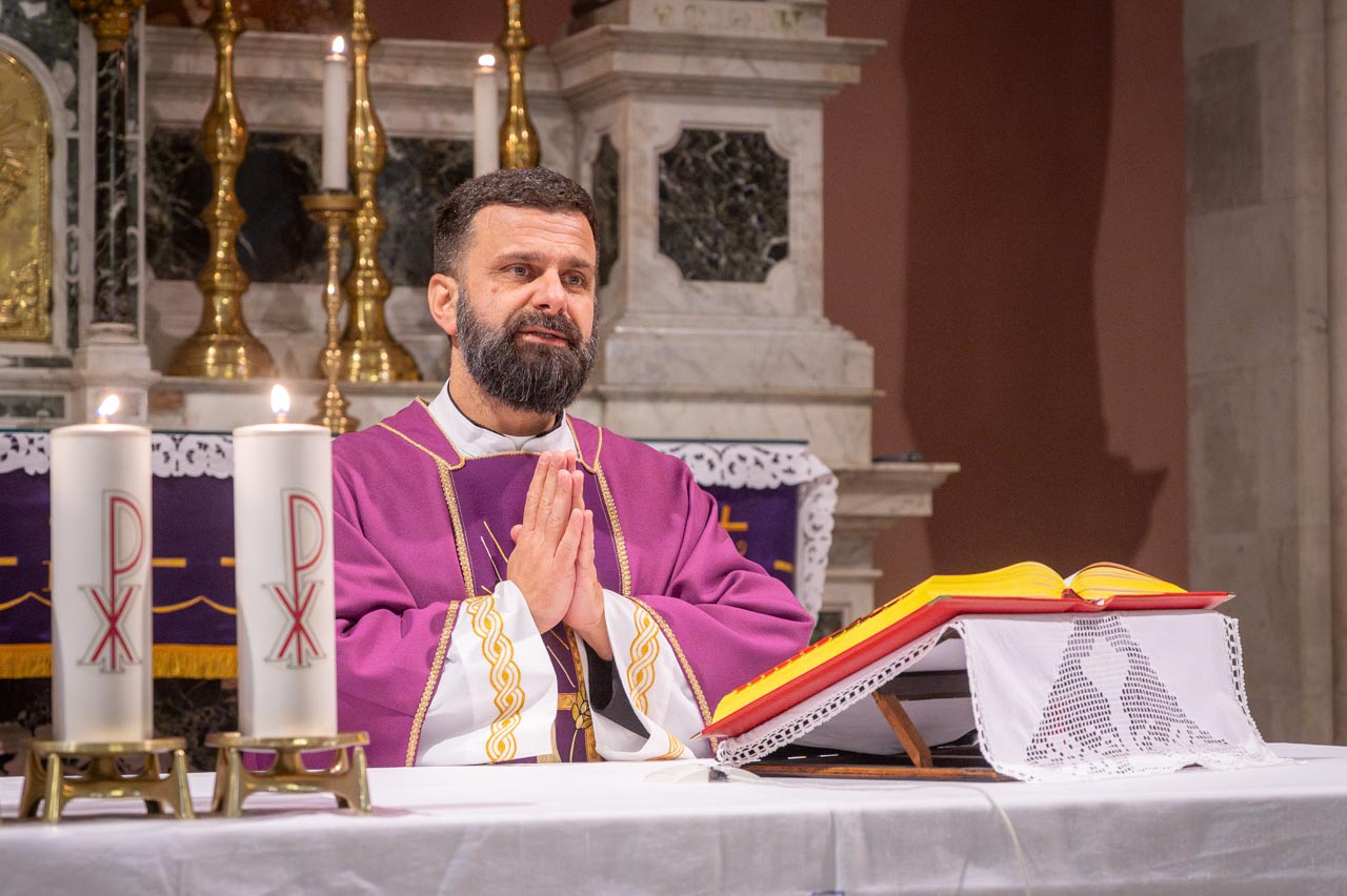 Nakon nagovora molila se Gospina krunica, koju su predvodili članovi Zajednice mladih naše župe, a središnji dio večeri bila je sveta misa u 18 sati. Uz predvoditelja obnove, u koncelebraciji je sudjelovao i župnik fra Denis Šimunović. Tijekom programa vjernicima je na raspolaganju za sakrament pomirenja bio fra Valentino Radaš, koji je ispovijedao. Pjevanje su animirali članovi Velike zajednice o. A. Gabrića.